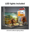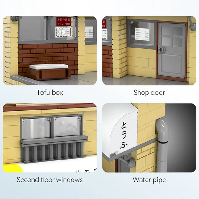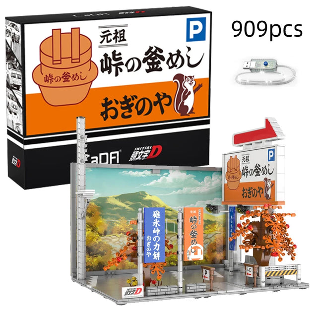Cada Anime Initial D Tofu Shop House Model Building Blocks City Japanese Racing Car Parking Lot Bricks Toys Kid Gifts With LED