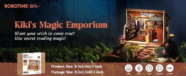 Robotime Rolife DIY Dollhouse Kiki's Magic Emporium Decorative Ornament Kids Miniature Fantasy Magic Doll House Wooden Kit Toy