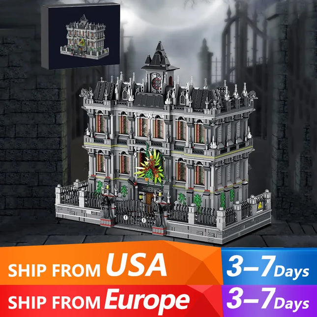 7499PCS Lunatic Hospital Building Blocks Street View Architecture Display Model High Difficulty Assemble Toys Gift for Adult Kid