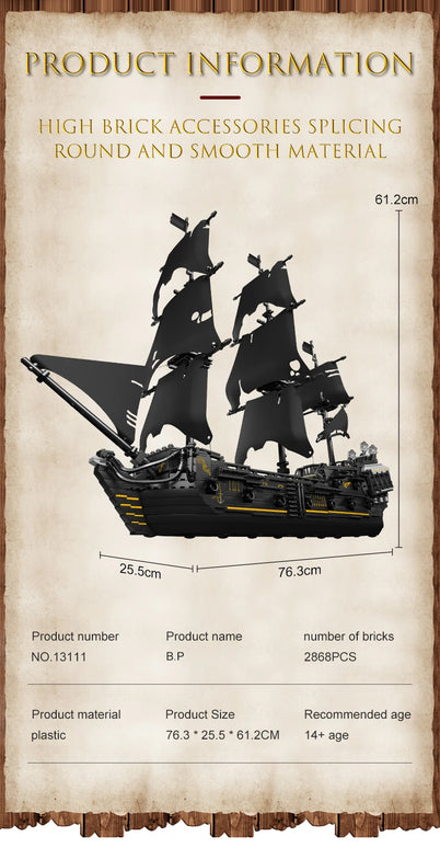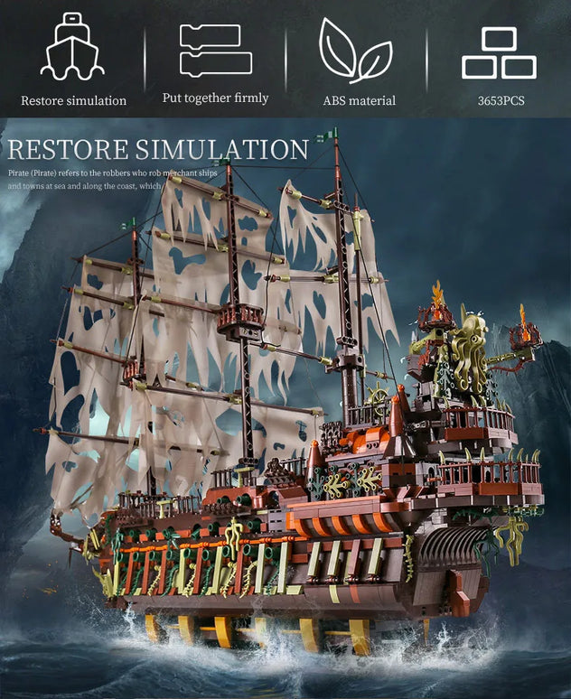 Mould King 13197 Pirate Ship Building Blocks Flying Dutchman Boat Construction Kit for Adults Kids Bricks Toys Christmas Gifts