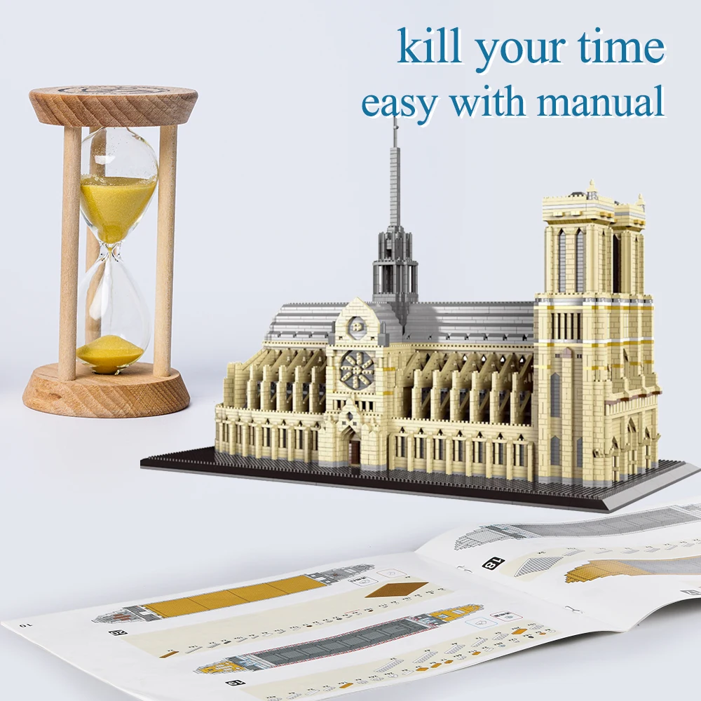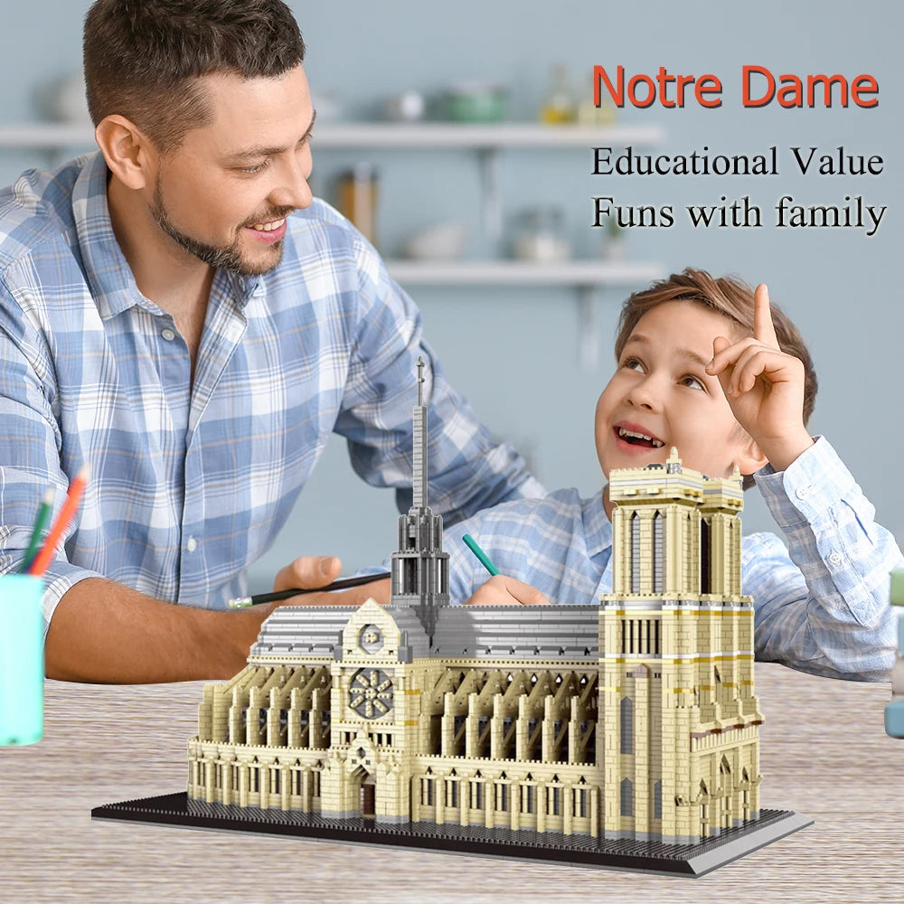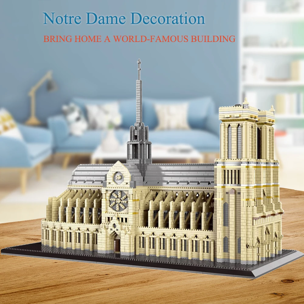 Notre Dame de Paris 3D Model Micro Building Blocks 0.5 m Long Grand Cathedral, Home Office Decor, Perfect Time-Killing Project