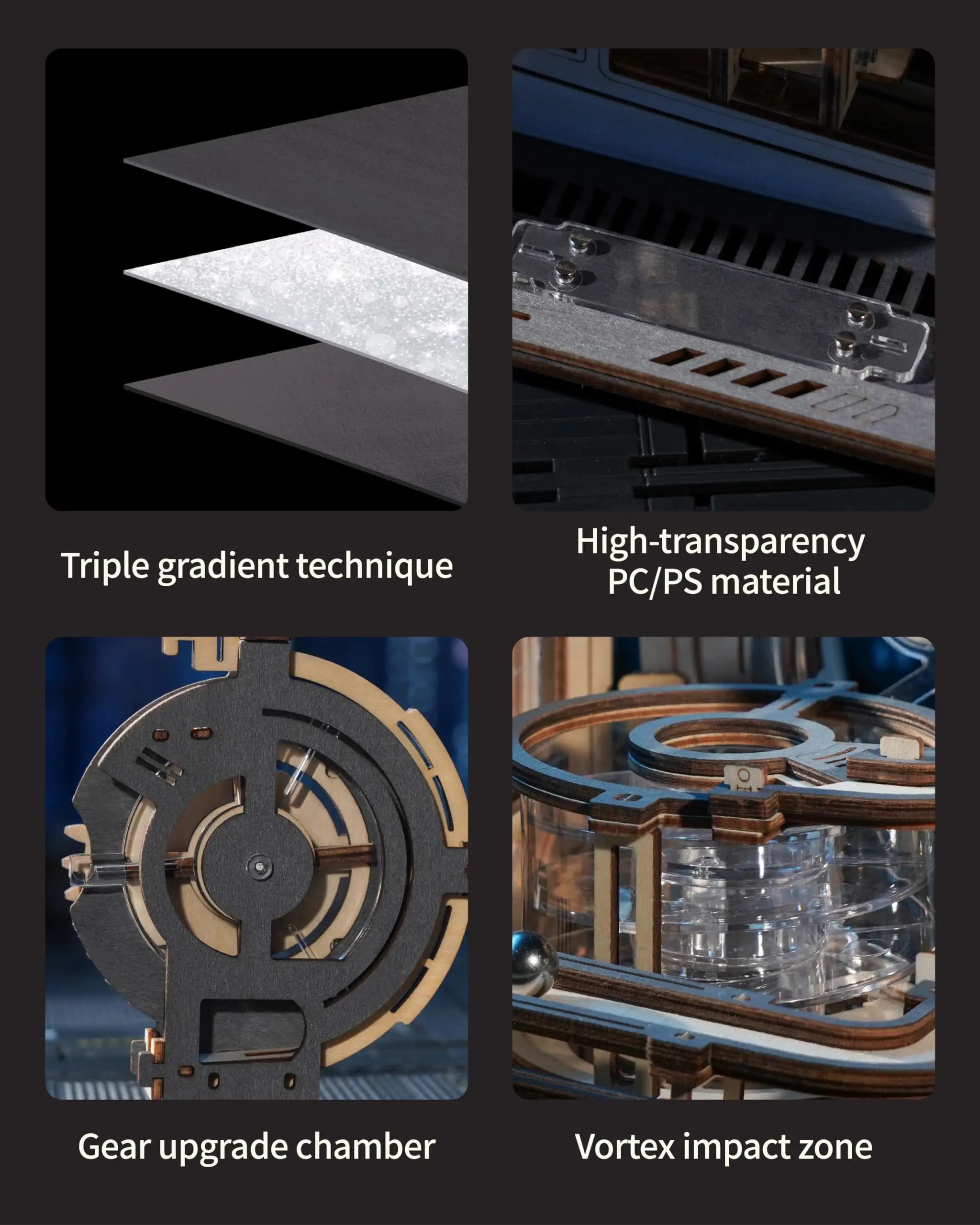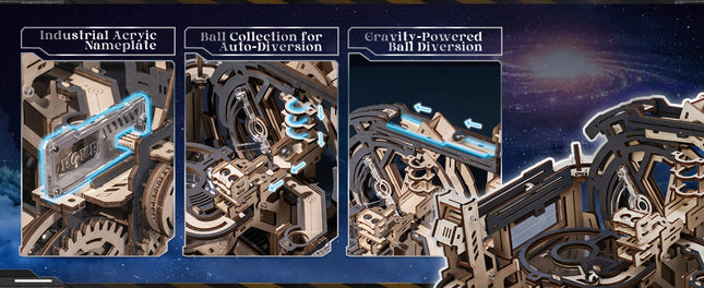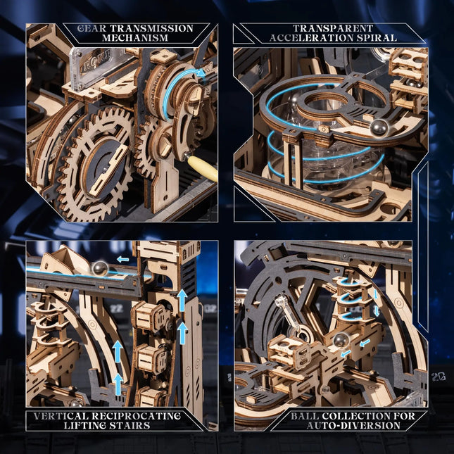 【Enthralling Fusion of Art and Engineering】Delve into the mesmerizing world of our Marble Spaceport LGC01, where the elegance of science intertwines with the precision of machinery. Experience the excitement of gravity loops, gear crosshatches, and mid-air acceleration vortices as marbles race through this intricate system, creating a spectacle that delights both the mind and the senses.