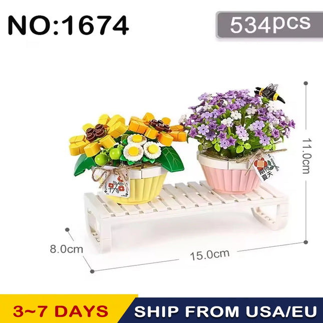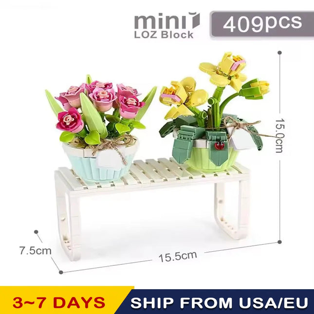Romantic bouquet Mini Building blocks Girl toys DIY design Valentine building blocks Flower ornaments decorate Christmas gifts