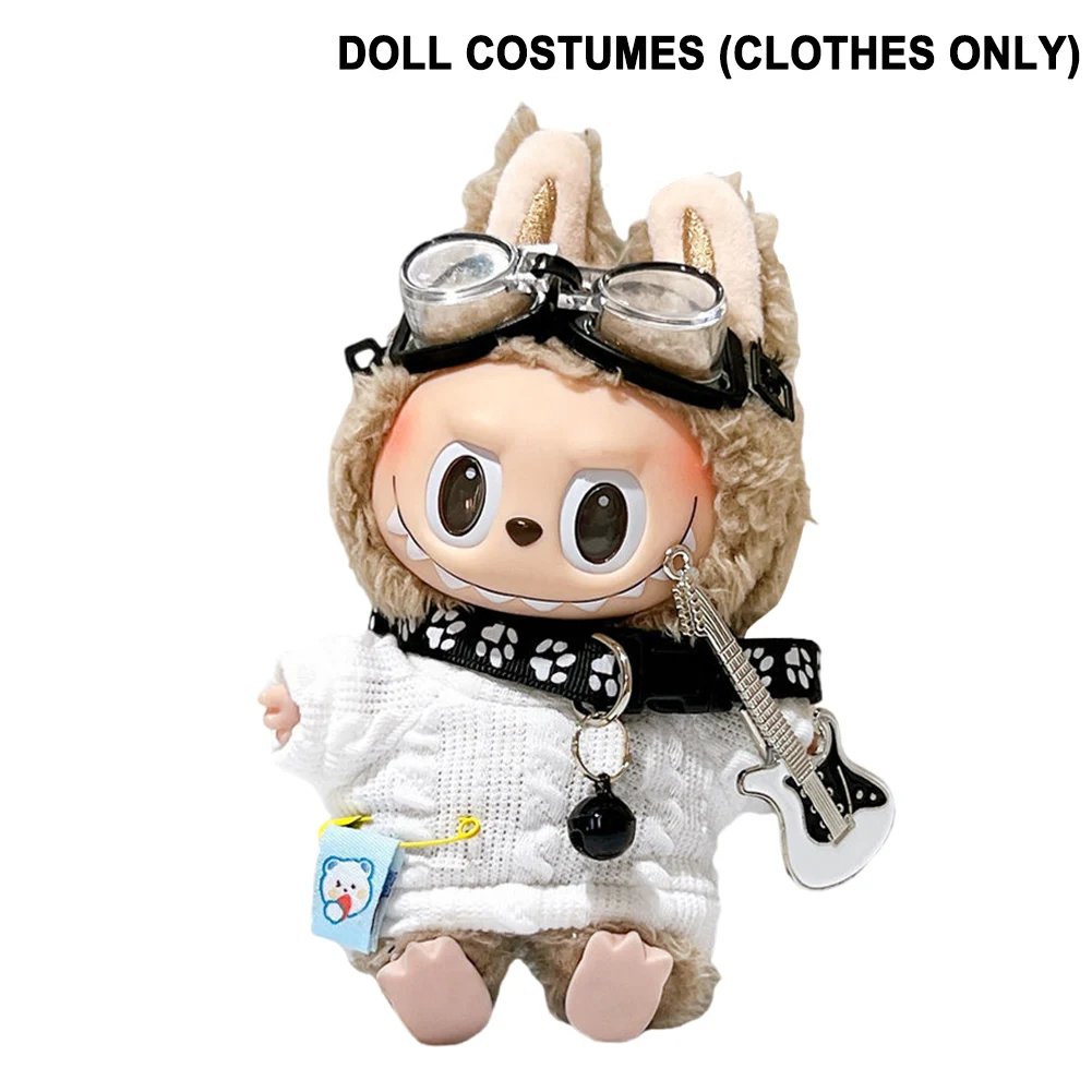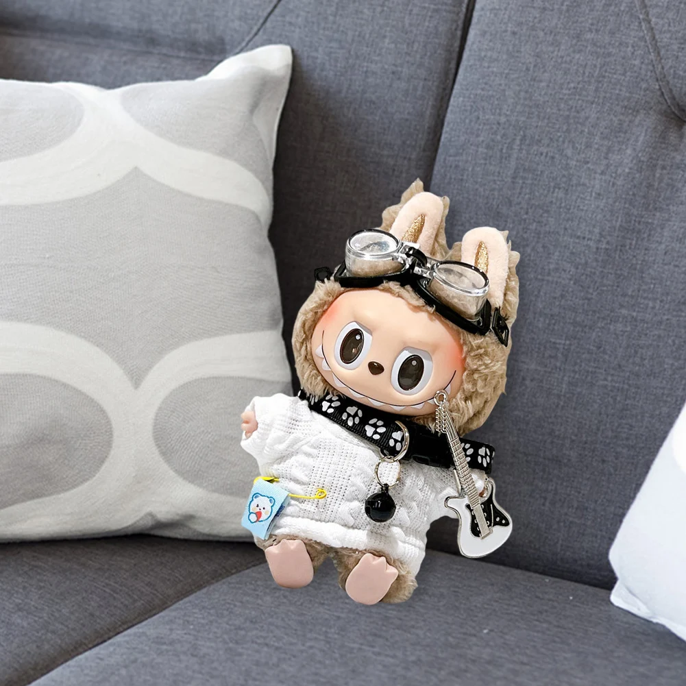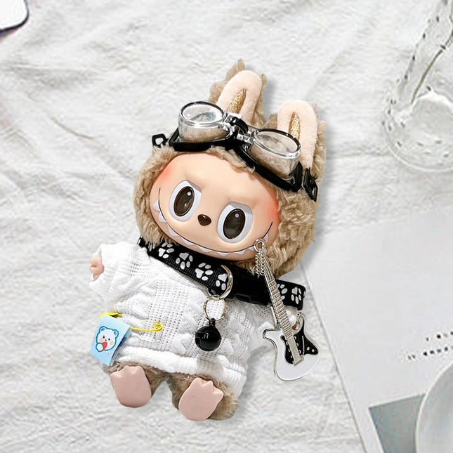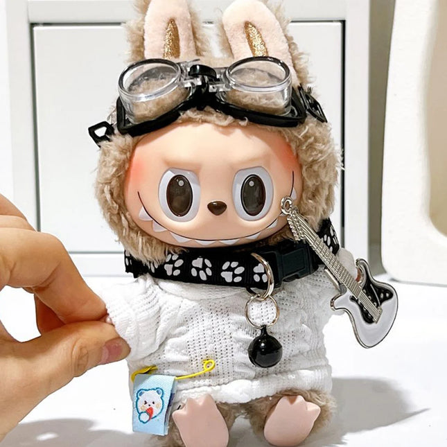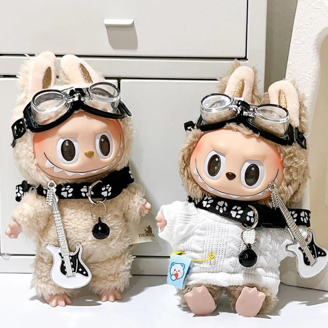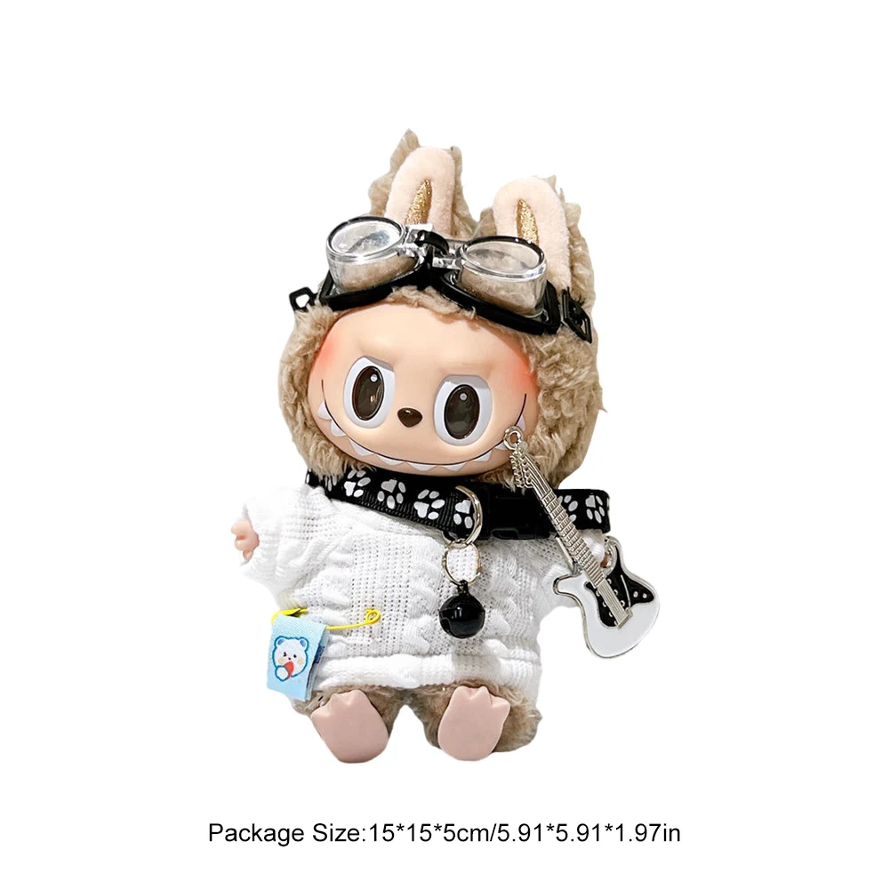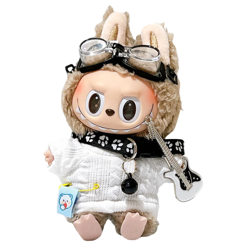 17cm DIY Sweater Goggles Dog Collar Guitar Fashion Doll'S Clothing Labubu Plush Doll Clothes Kawaii Animal Plushies Cartoon Suit