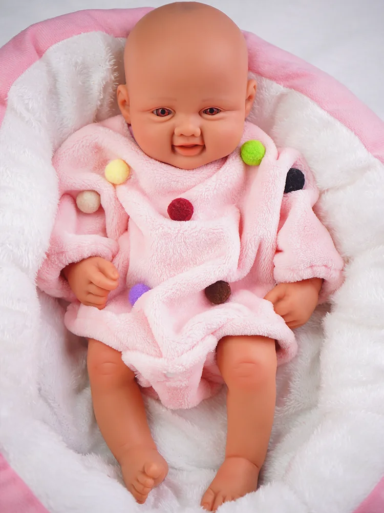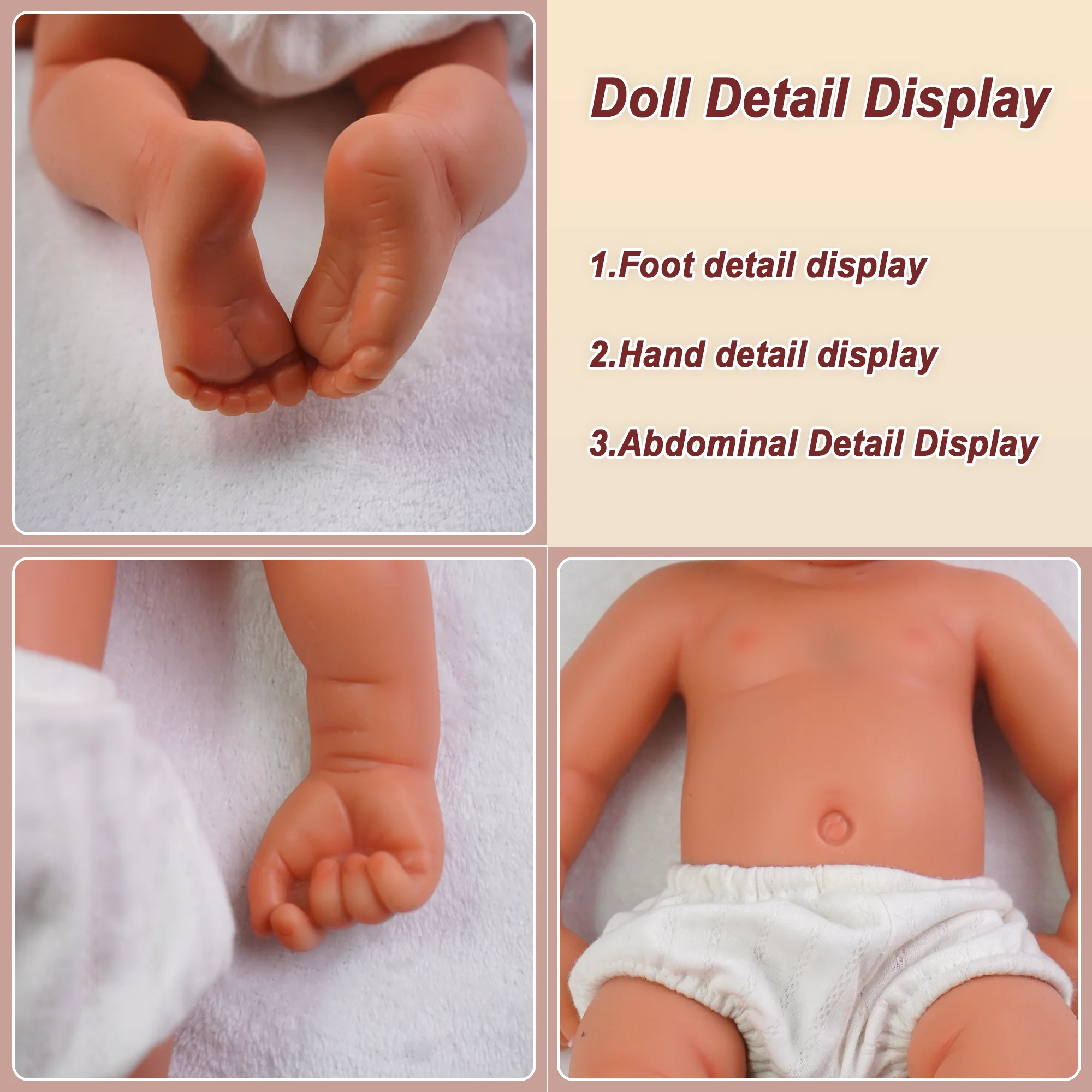 Size: 17.3 inches from head to toe. Suitable for baby hats, nappies and other baby items, weighs approximately 2.8kg.MATERIAL: Made of real platinum silicone. We use only the best reborn materials to make your reborn incredibly realistic.Hair: Hairless.Gender: FemaleNose: Nostrils are flared like a doll's.Mouth: Lips are hand-painted.Nails: Natural, white with sealed tips on hands and feet.Skin: All newborn dolls have a soft, pleasant skin colour with a stain effect and a special treatment of several layers of paint.FUNCTIONALITY The dolls have flexible limbs. The dolls can easily sit, lie down and bathe, but can not stand, talk, write or blink.Uses: birthday gift, Christmas gift, children's toy, communication with grandparents, doll collection.Hello buyers, the product is clothing only for display, shipping only naked doll, if you need clothing, please contact customer service, we will arrange doll clothing for you, thank you for your cooperation!