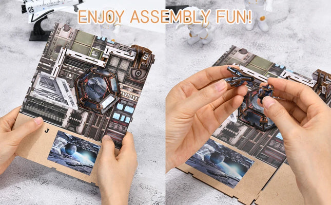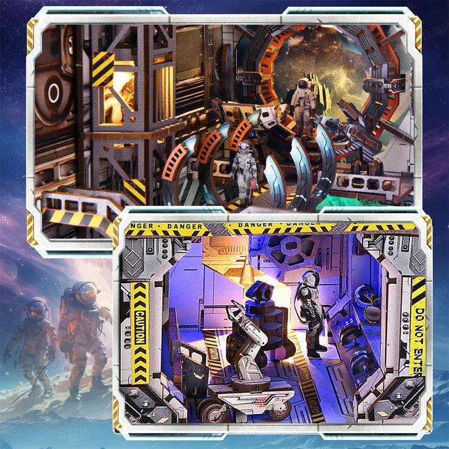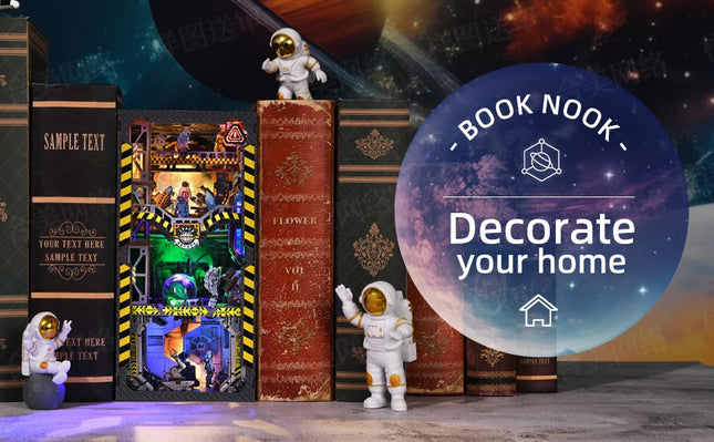 Book Nook Kit Apollo Bricks Space Exploration Model Build 3D Wooden Puzzle DIY Bookshelf Miniatural Astrona Dollhouse Decoration