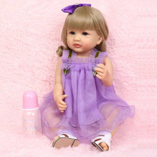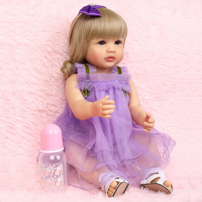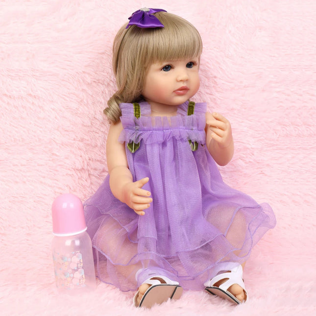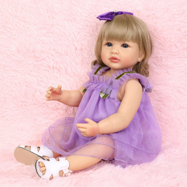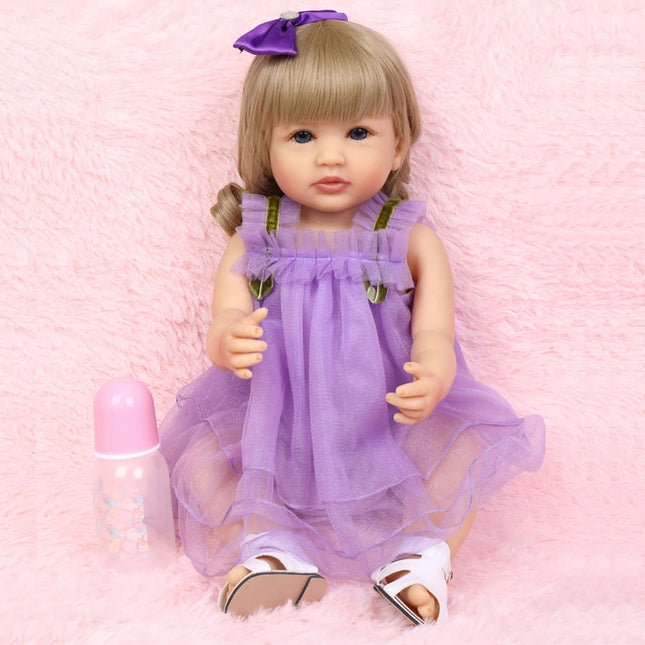 Fashion 55cm Simulation Princess Dolls Toy Mini Cute Purple Dress Baby Series Doll with Golden Curly Hair For Kids Kawaii Dolls