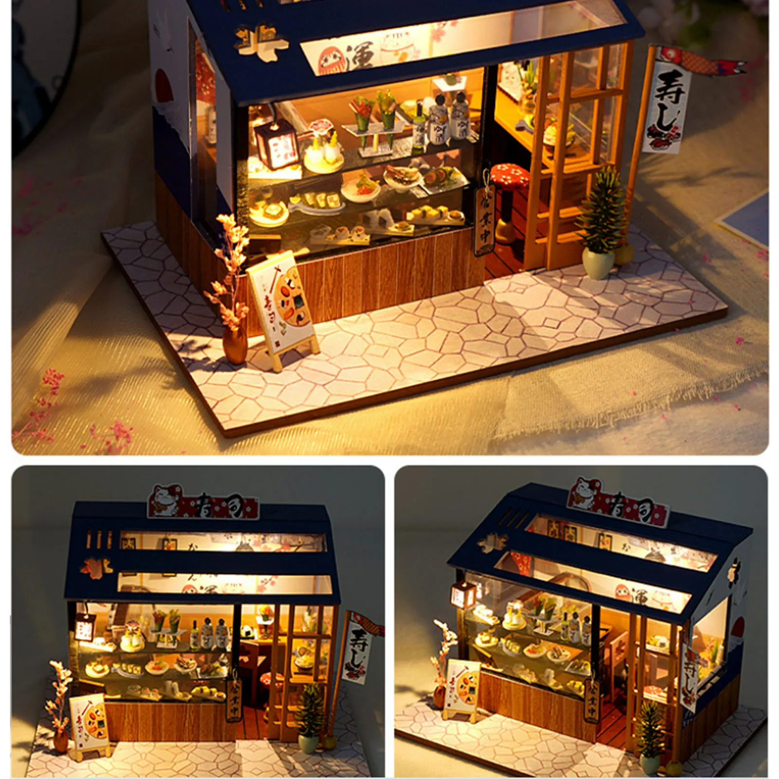 Japanese Sushi Store DIY Miniature Doll House With Furniture Miniatures Sushi House Dollhouse Toys For Children Girls Gifts