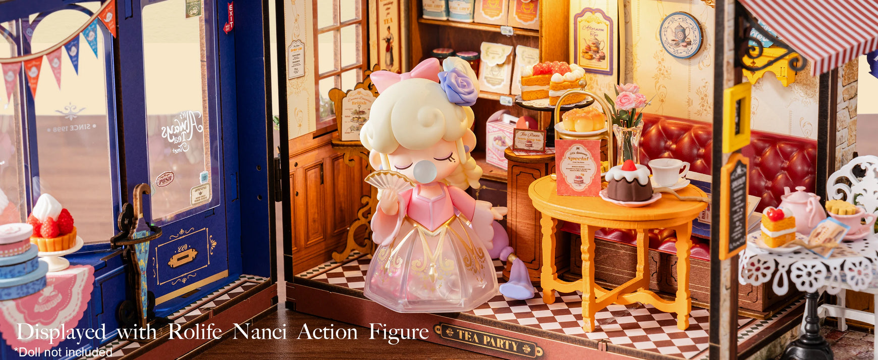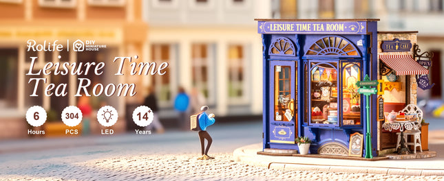Robotime Rolife Leisure Time Tea Room DIY Miniature Dollhouse Kit Crafts Hobbies Amazing Gift for Women Children DG171