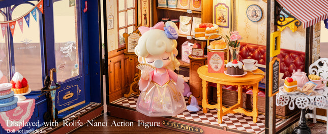 π‘ [Miniature Afternoon Tea Shop] β Welcome to the "Leisure Time Tea Room," a quaint corner shop nestled on a lively London street. Its navy-blue storefront, large glass display windows, and ornamental openwork roof evoke timeless elegance and invite you into a cozy, refined space.