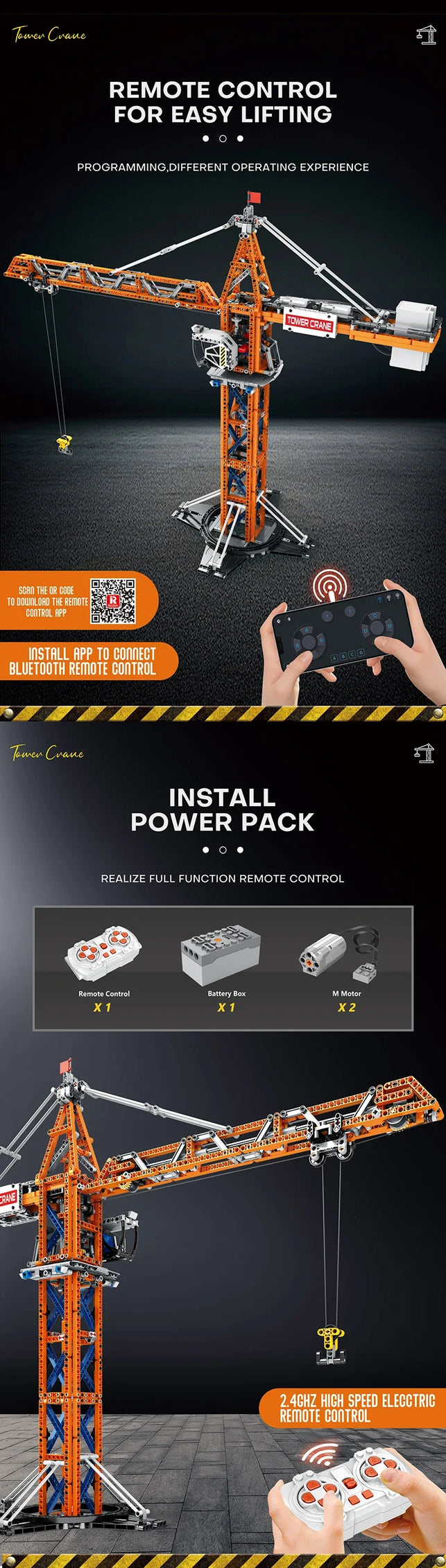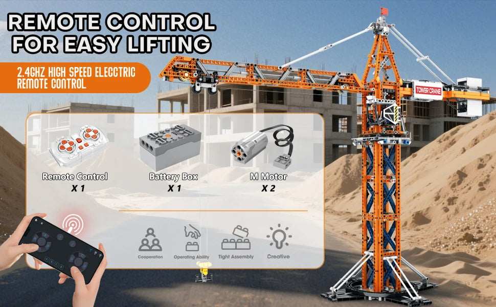 Feature 1: Remote control power tower crane building block toy