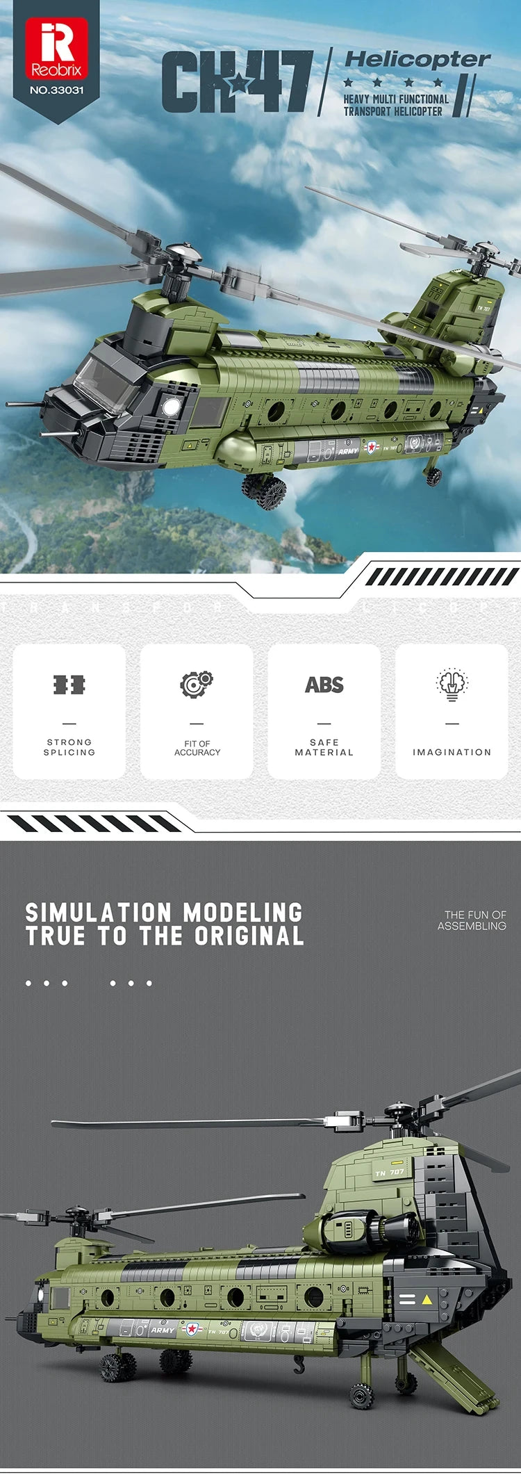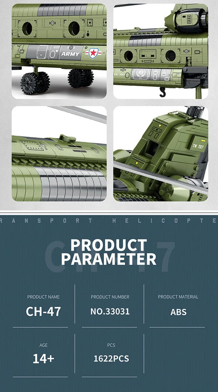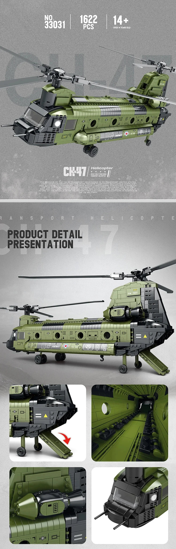 1622PCS CH-47 Chinook Transport Plane Building Blocks Military Armed Helicopter Fighter Model Bricks Toys For Kids Holiday Gifts