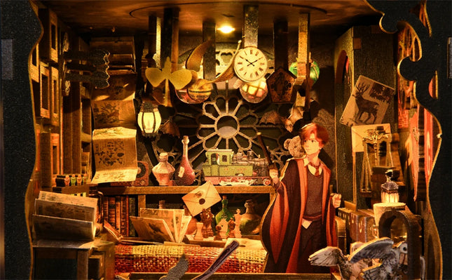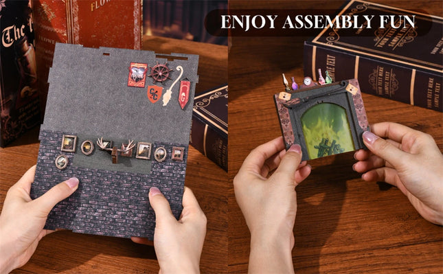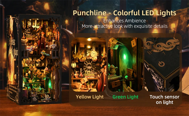 Book Nook Kit Magic House DIY Wooden Puzzle Bookshelf Insert Decor Dollhouse Model Bookend Building Home Decoration Gifts