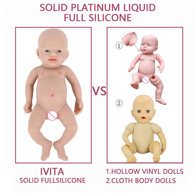 1.Our reborn baby is made of Platinum Liquid Full Silicone,it is Solid reborn baby dolls,And not like vinyl dolls are hollow.That is Real FULL SILICONE.it is Weighted Body for a "Real" Baby Feel.So it is expensive than other seller baby dolls.
