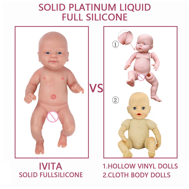 1. Our reborn baby is made of Platinum Liquid Full Silicone,it is Solid reborn baby dolls,And not like vinyl dolls are hollow.That is Real FULL SILICONE.it is Weighted Body for a "Real" Baby Feel.So it is expensive than other seller baby dolls.