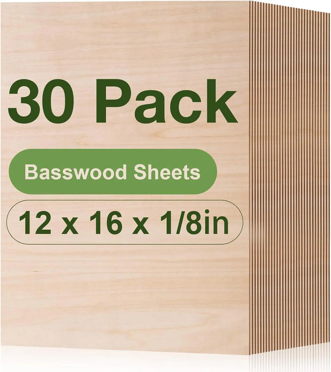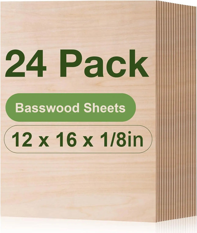 This set includes 24 pieces of durable basswood sheets, each measuring 30 x 42 cm (12 x 16 inches) with a standard thickness of 1/8 inch (approx. 3.0 mm ± 0.2 mm). Designed for structural stability and warp resistance, these sheets maintain their integrity even under intricate cuts and fine engraving.