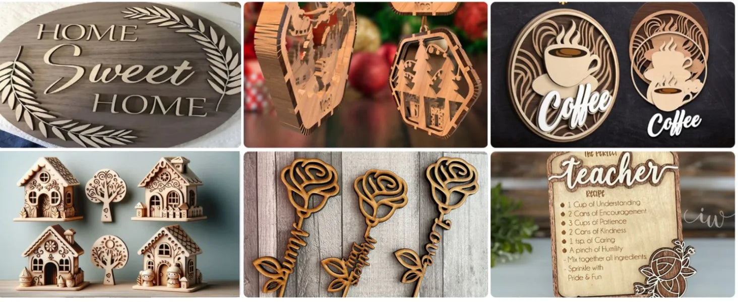 These unfinished wood boards are perfect for laser engraving, diode laser cutting, UV printing, or manual sawing—ideal for making interior signs, custom cutouts, ornaments, gift tags, cake toppers, nameplates, and more. Elevate your next project with the premium look and feel of genuine wood grain.