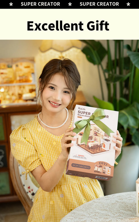 ROBOTIME DIY Miniature House Craft Kit, Dollhouse Model Building Kit Birthday Creative Gifts for Adults, Kids (Warm Dining Room)