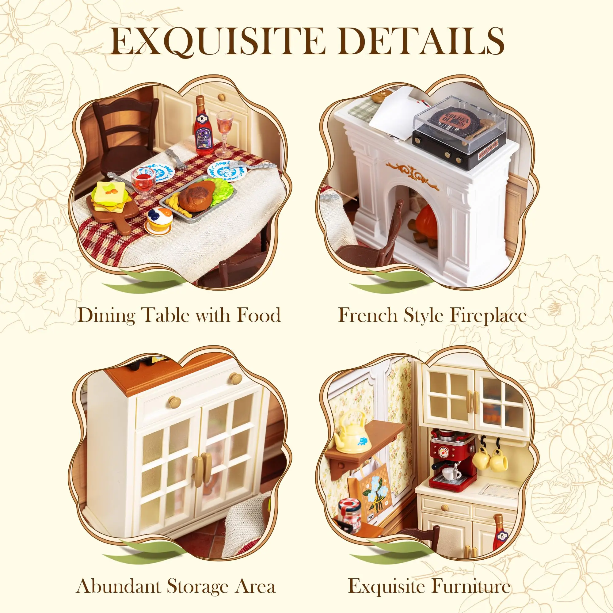 Set the mood with included LED lights! Install them overhead or as subtle floor lighting, then connect multiple rooms via Type-C ports (5V power) for whole-house ambiance. For extra realism, add dustproof doors/roofs (sold separately).