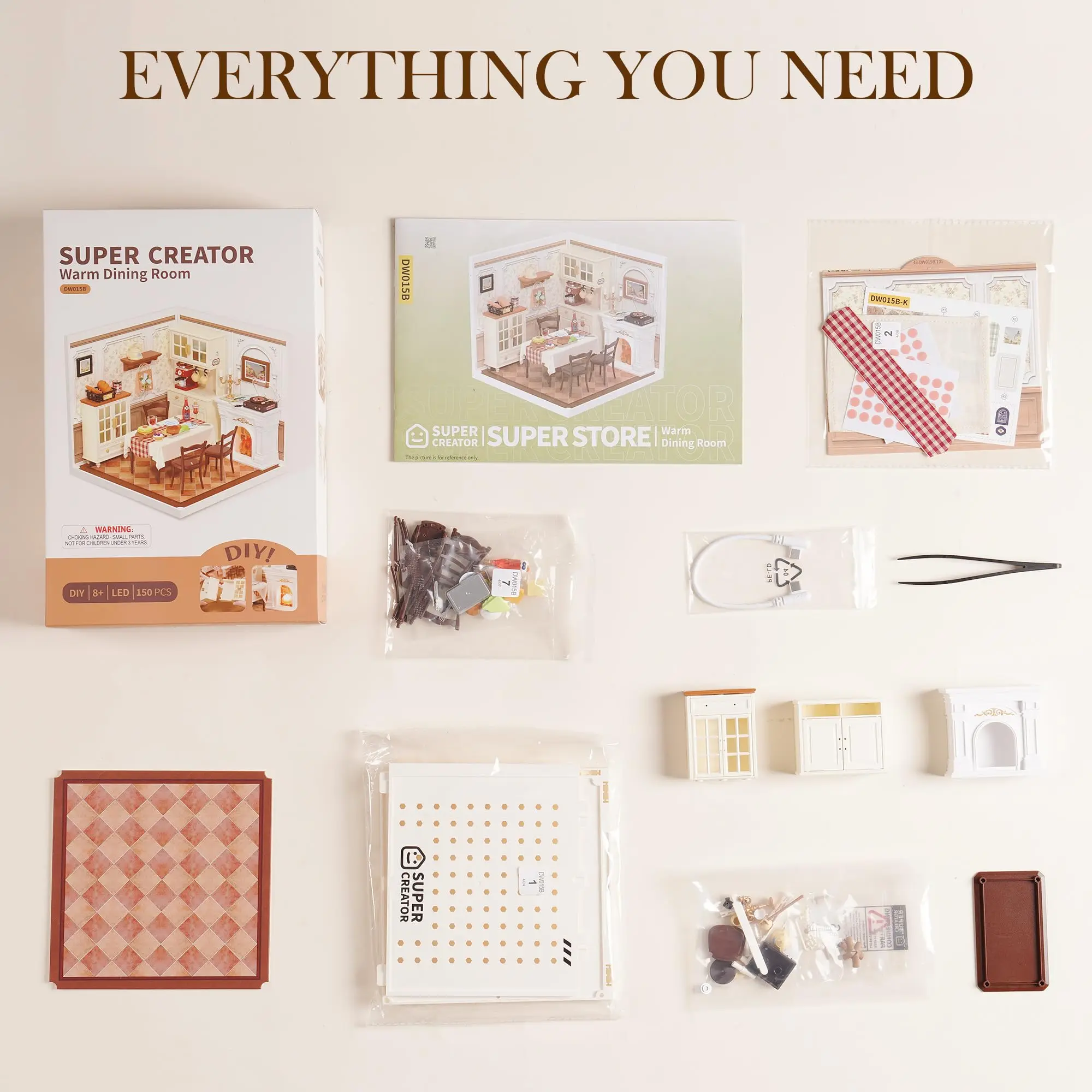 Build the cozy dining nook of your dreams! This Super Creator Series kit comes with a charming table set, rustic fireplace, and delicate dinnerware - every piece designed to create warm memories in miniature form. Mix and match with other home kits to design your perfect tiny universe.