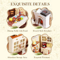 From the wood-grain dining table to the inviting fireplace, each element adds authentic charm. The carefully proportioned chairs and table settings make this the perfect spot for imaginary dinner parties in your dollhouse world.