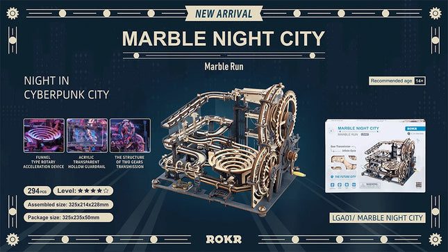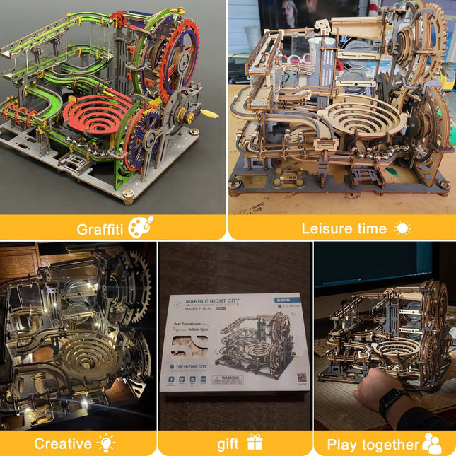 Robotime ROKR Marble Night City 3D Wooden Puzzle Games Assembly Waterwheel Model Toys for Children Kids Birthday Gift