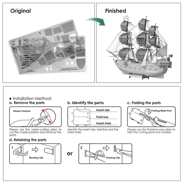 Piececool 3D Metal Puzzles The Black Pearl Jigsaw Assembly Model Kits Diy Pirate Ship for Adult Birthday Gifts for Teens