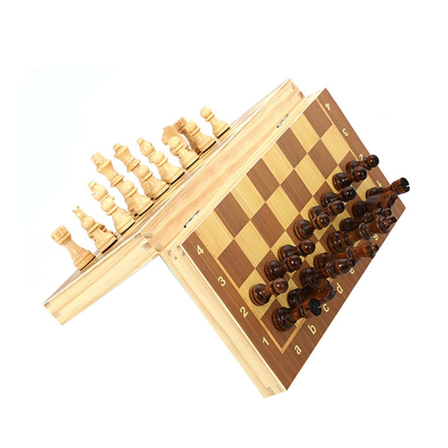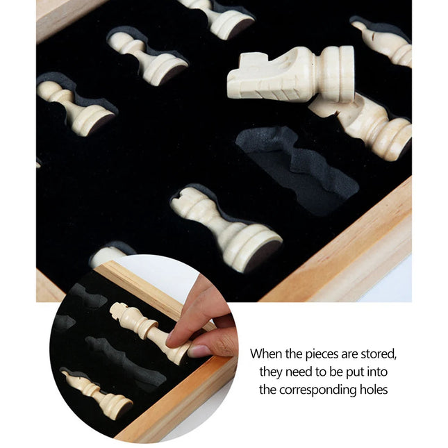 Wooden Chess Set Folding Magnetic Large Board With 34 Chess Pieces Interior For Storage Portable Travel Board Game Set For Kid