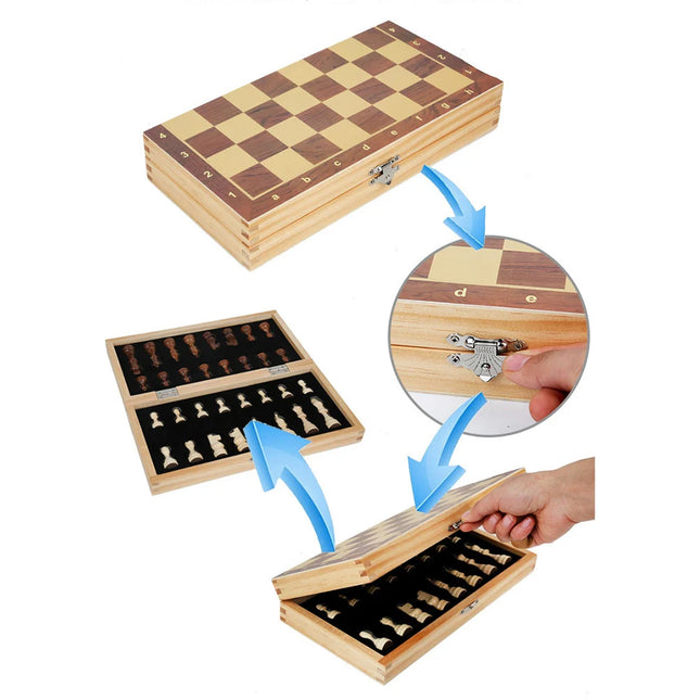 29x29cm 3 in 1 Chess Chekers Backgammon Developing Strategic Thinking Chess Wooden Set Best Gifts Wood Board Game for Boys Girls