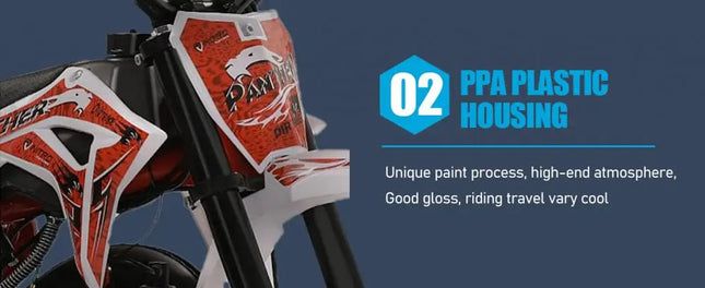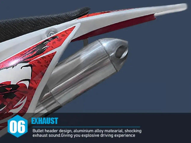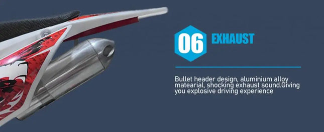 Cool Appearance: The design seems so cool, the painting process plastic housing, fashionable appearance, shock absorption springs, and even the high seat cushion design. This cool mini motocross ride-on is ready to inspire fun off-road action.