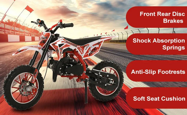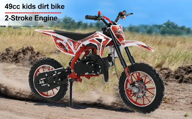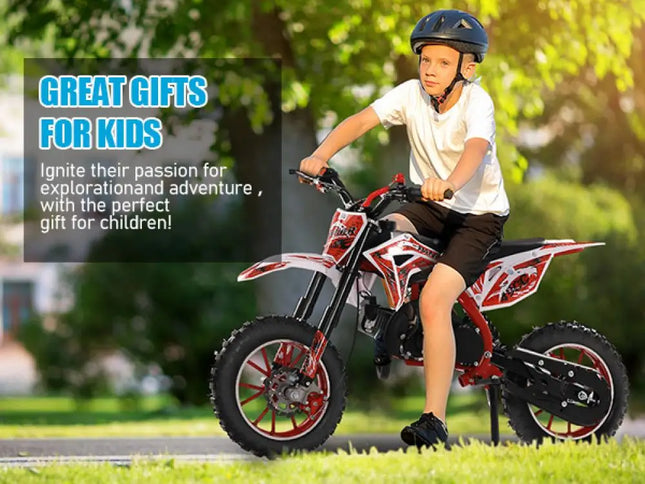 49cc 2-Stroke Kids Dirt Bike, Gas Power Motocross, Off Road Mini Motorcycle, Pocket Motorbike with Front Rear Disc Brakes, Racing Max Speed 40KM/H (Red)