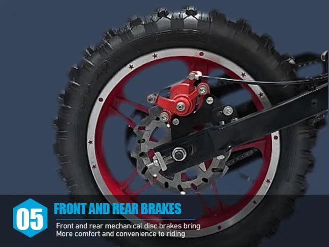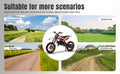 Front Rear Disc Brakes, Handlebar Switch & Off-road Tires: The strong dual front/rear disc brake as a guard in our brake braking offers maximum control to protect you for balance from over speed at any motorcycle skill level. Sturdy alloy handlebars for children, stable braking, one click start switch, convenient, fast, and labor-saving, with small spacing reinforced throttle handles, making it easy and effortless. With 12 inch anti-slip and wear-resistant inflatable off-road tires, the motorcycle is relatively stable and safe to ride.