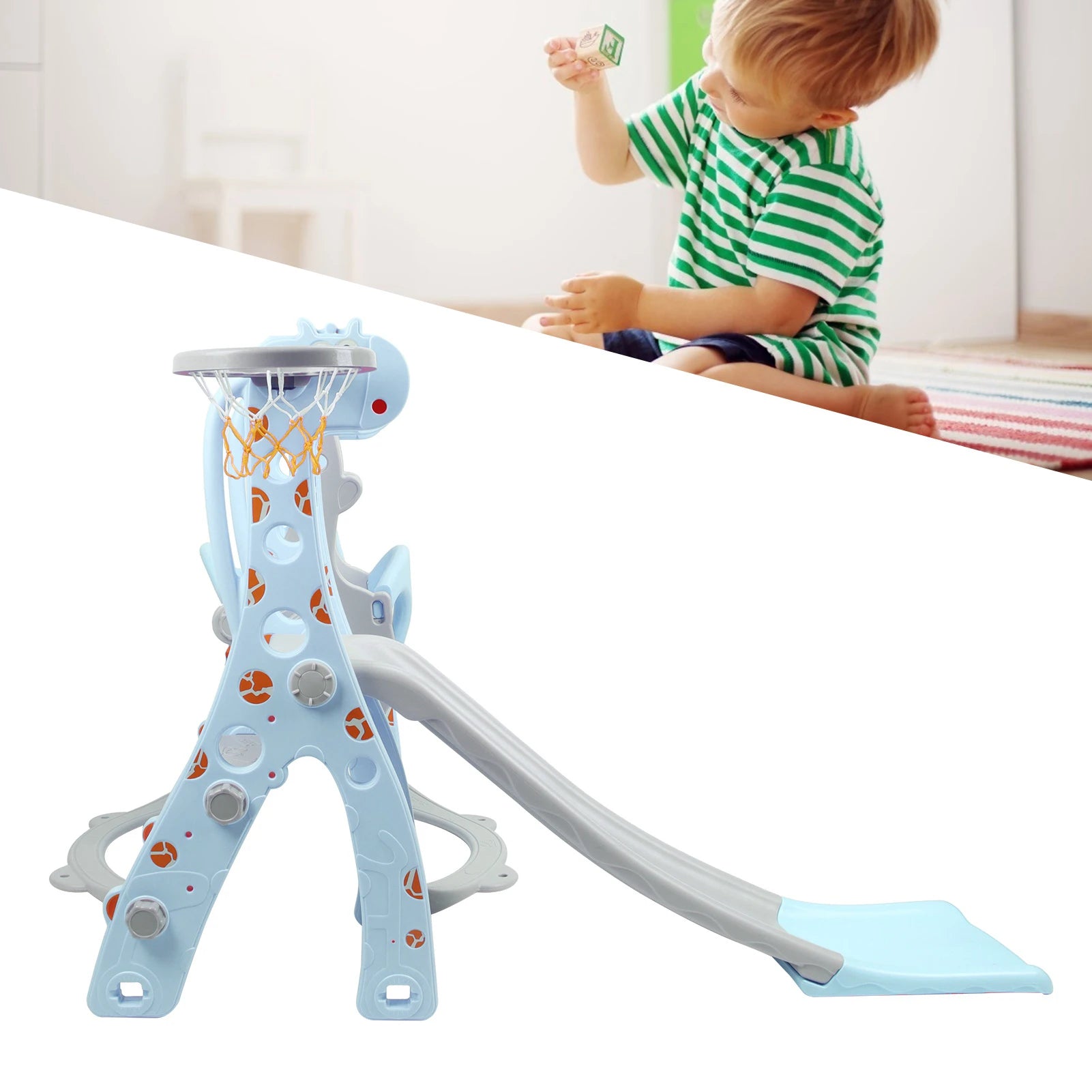 4. Designed with basket hoop, your kids can experience ball picking, running, jumping and other sports.