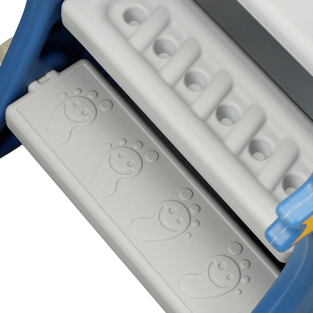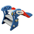 Folding Slide Multipurpose Grab Rail Dinosaur Shape Blue Construction Indoor Slide with Basketball Hoop Climber for Home
