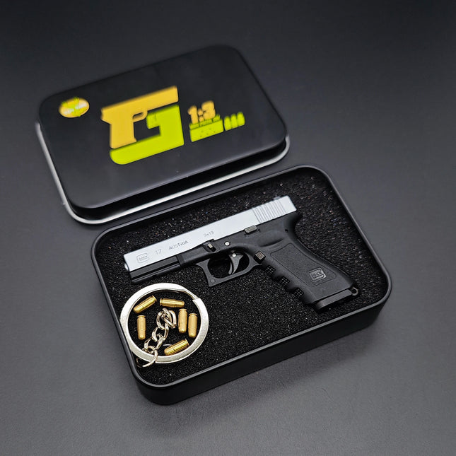 Mini Glock 17 SilverBlack Pistol Keychain 1:3 Scale Full Metal Gun Toy Keychain Fidget Toy Boy/Birthday Gifts And Collection