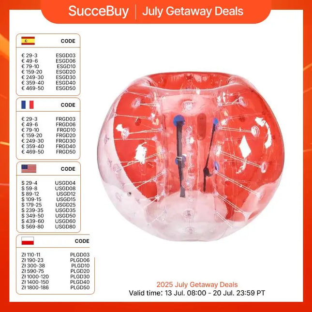 SucceBuy bubble balls are perfect for solo or group activities, allowing you to bounce, bop, and roll with friends. Ideal for gardens, parks, and backyards, they bring fun to any event, anytime, anywhere!