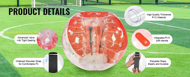 Experience the thrill of play with SucceBuy inflatable bumper balls. Made from 0.8mm thick, explosion-proof PVC, these 5FT diameter balls are built for durability and safety. Get ready for hours of excitement as you roll, bump, and laugh your way to unforgettable fun with SucceBuy bubble soccer balls!