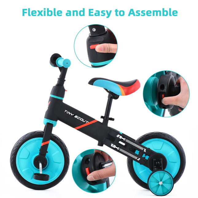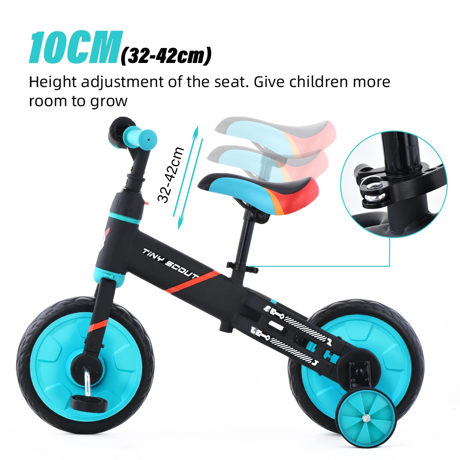 UBRAVOO Tiny Scout Balance Bike 3 4 5 Years , 4-in-1 with Optional Support Wheels and Pedals, Saddle Height Adjustable,JL102