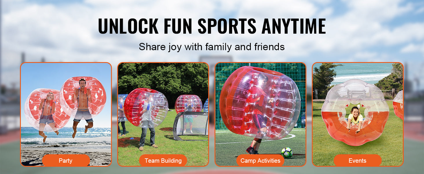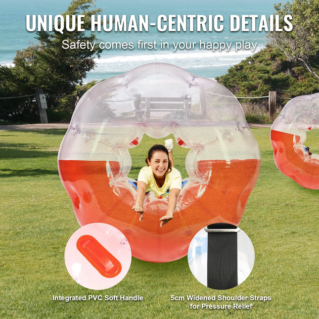 Flexible Playing Fun: VEVOR human hamster bubble balls are suitable for solo or group entertainment, enjoy the freedom of bouncing, bopping, and bumping with friends. It is ideal for gardens, backyards, playgrounds, parks, recreation centers, enjoying bumping fun anytime, anywhere.