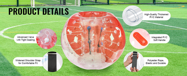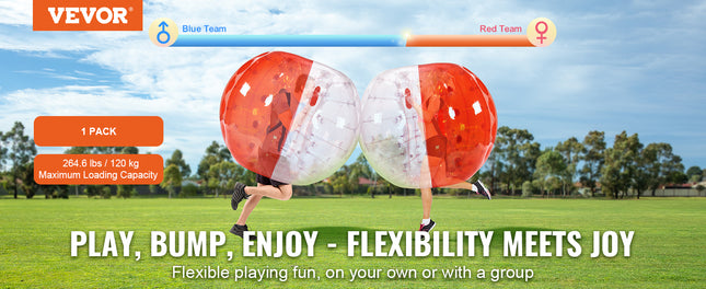 High-quality Material, Endless Fun: Dive into endless bumping fun with VEVOR Inflatable Bumper Ball! Crafted from 0.8mm thickened, explosion-proof PVC, these sumo balls are durable, safe, waterproof, and built to prevent air leaks. Excellent tear resistance, advanced valve system and tight sealing promise long-lasting entertainment.