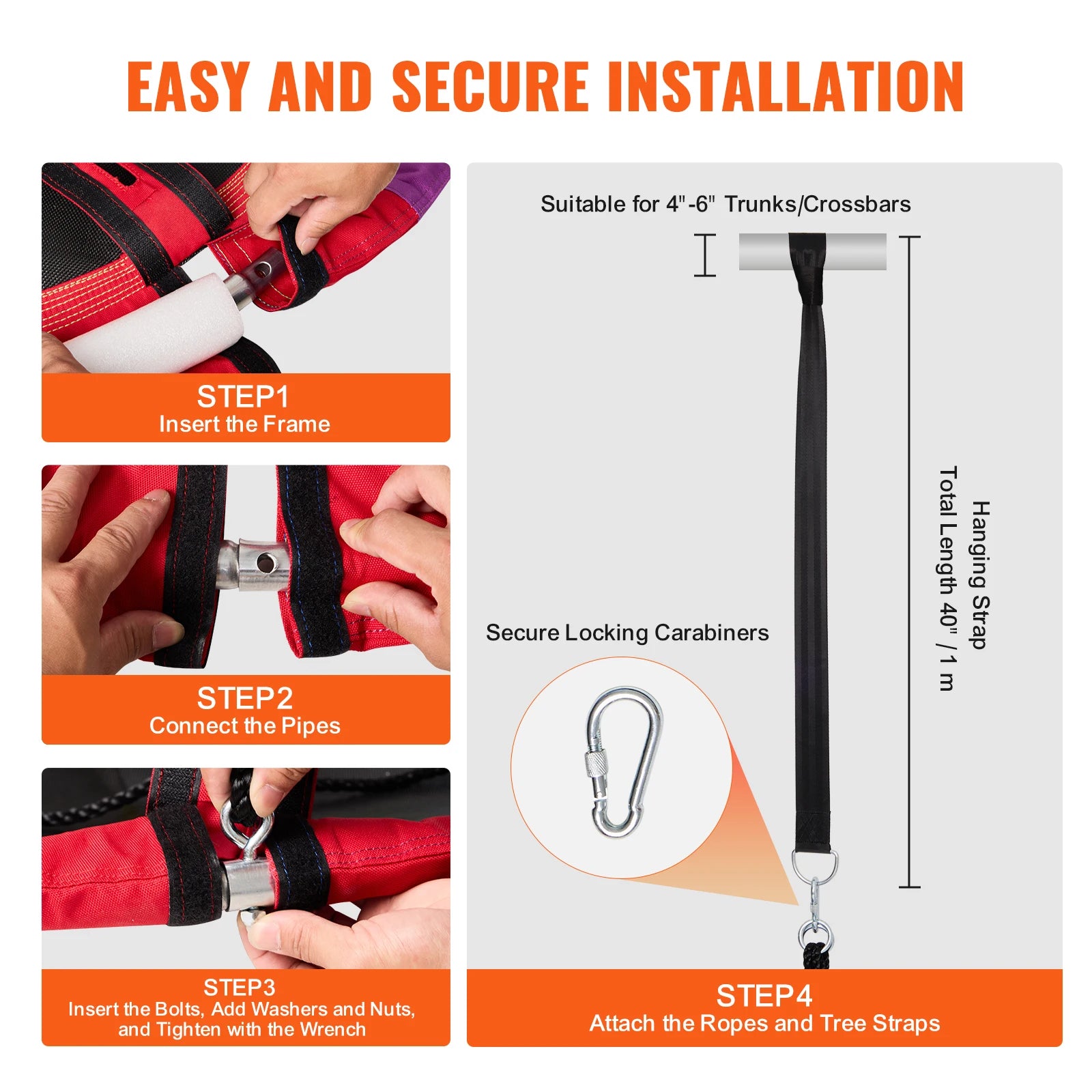 Hanging Accessories Included: The outdoor children's disc swing includes two 39" / 1m reinforced swing straps and heavy-duty galvanized locking carabiners, allowing you to securely and easily hang the round swing on tree branches (preferably with a diameter of 4-6 inches). The assembly is simple and can be done independently.