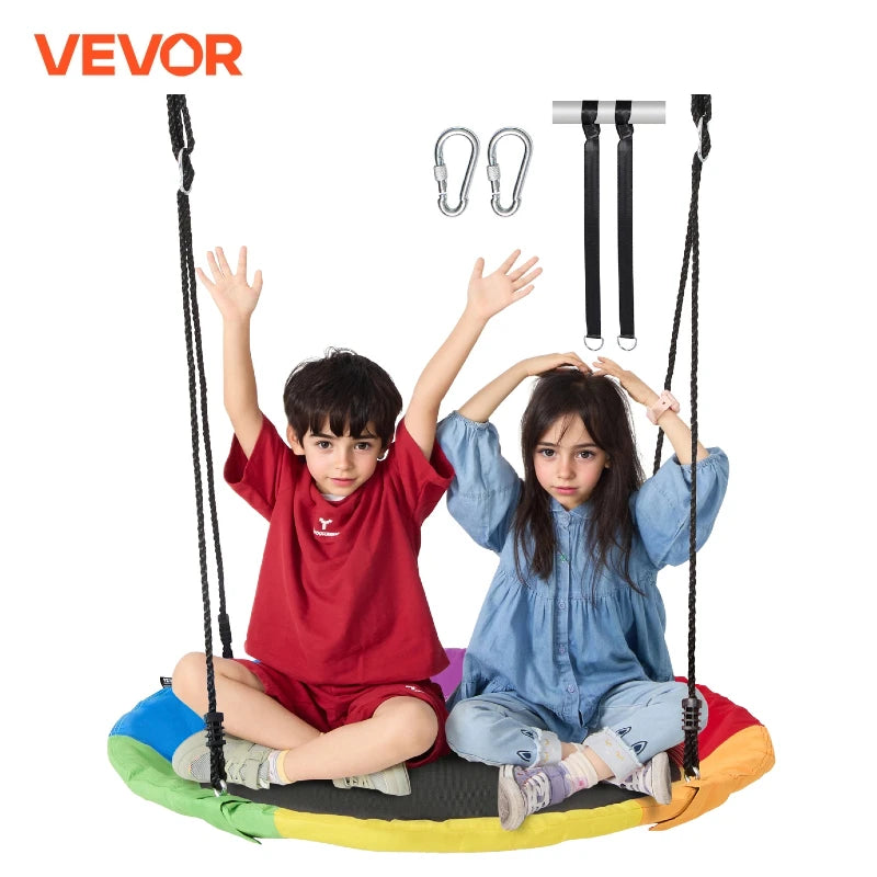 VEVOR Tree Swing Saucer Swing 750lbs Swing Seat 2 Tree Hanging Straps and Adjustable Multi-Strand Ropes Round Swing Kids Outdoor