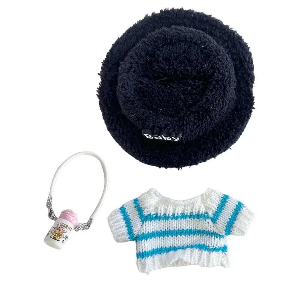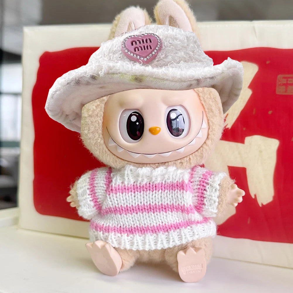 17cm Mini Plush Doll'S Clothes Outfit Accessories For Korea Kpop Exo Labubu II Idol Dolls Sitting Party Plaid overalls Clothing