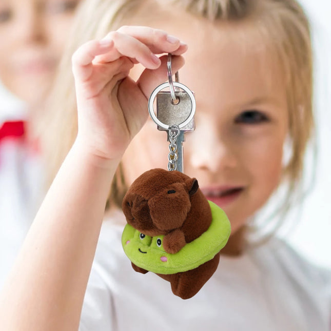 4Inch Cute Plush Capybara Doll With Animal Swimming Ring Keychain Backpack Pendant Toy Capybara Pendant For Child Plush Toys