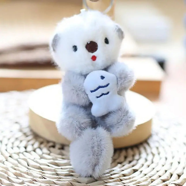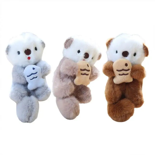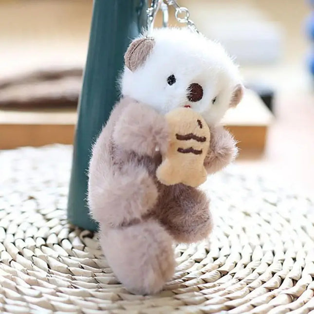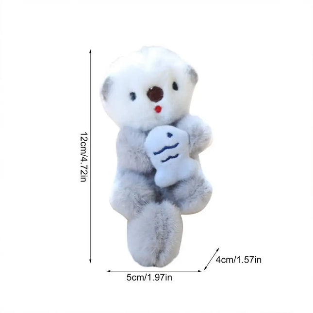 Cute Otters Holding Fish Plush toy soft Stuffed Animal Doll Key rings School Bag Pendant Props Keychain Accessories