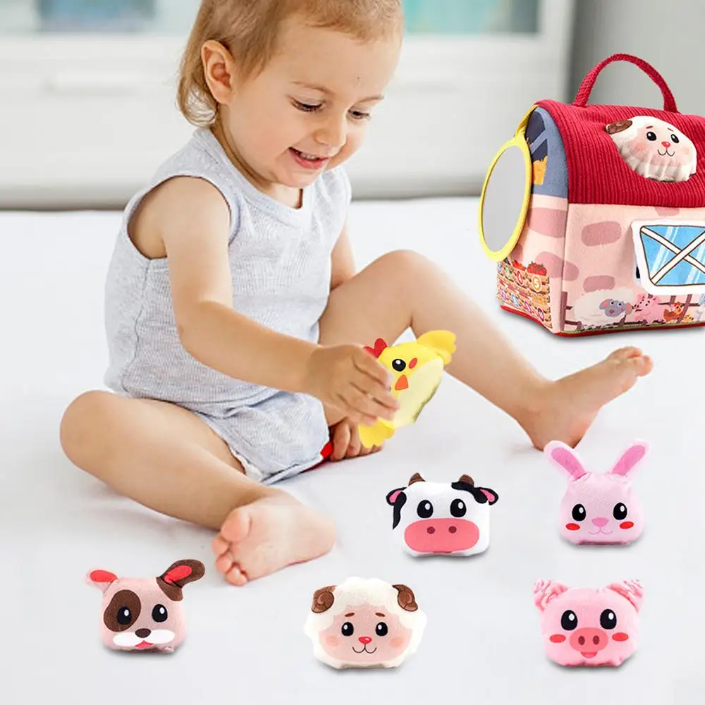 Farm Animal Toys Cute Stuffed Animal Pretend Play Set Farm Barn House Carrier Toy Set With Mirror For Easter Basket Stuffers