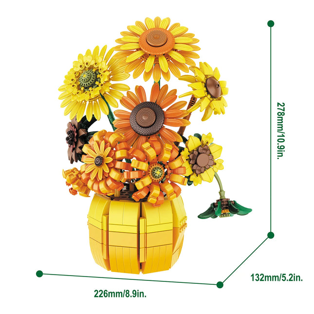 1009PCS Sunflower Building Blocks Flower Bouquet Vase Model Bricks Set Idea Home Decoration Kids Educational Toys Holiday Gifts