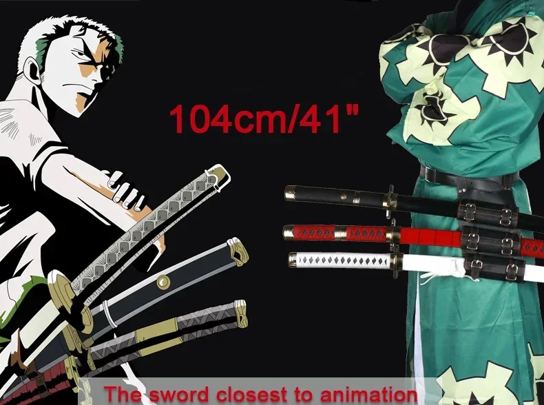 41" Roronoa Zoro Katana Sword 3-pcs Wooden Toy Swords Anime Cos Weapon Props 1:1 original pattern Wado kitetsu Shusui Enma Sword