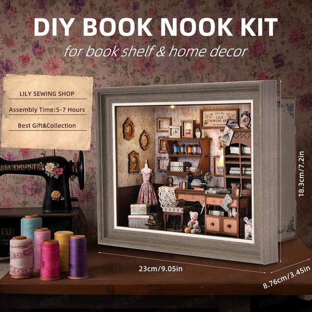 Book Nook Kit Tailor's Shop DIY 3D Wooden Puzzle Dollhouse Photo frame ornament Model Bookend Building Home Decoration