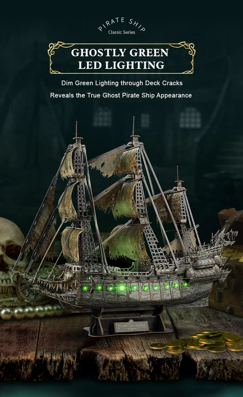 CubicFun Green LED Flying Dutchman 3D Puzzle Pirate Ship Model